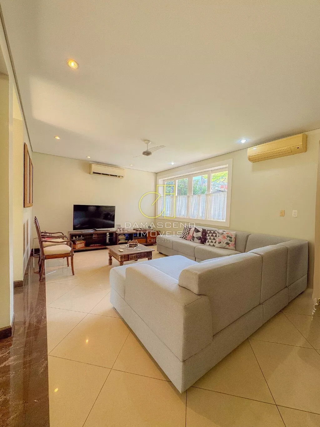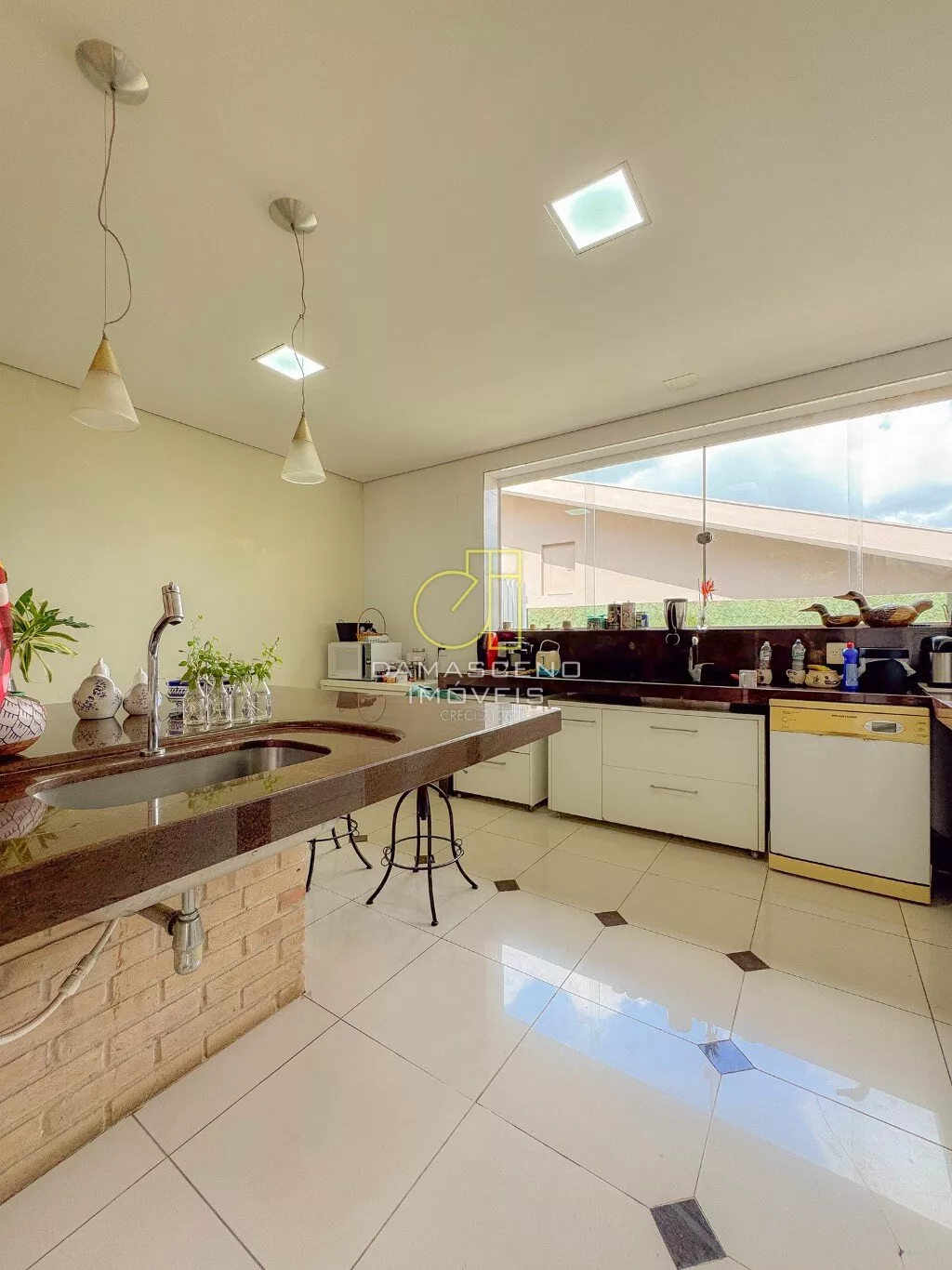 Casa linear com 250m² de área construída, com ampla sala em 03 ambientes, 03 quartos sendo 01 suíte (todos os quartos com saída para jardim lateral), 02 banheiros sociais, 01 lavabo, espaçosa cozinha com armários, lavanderia.