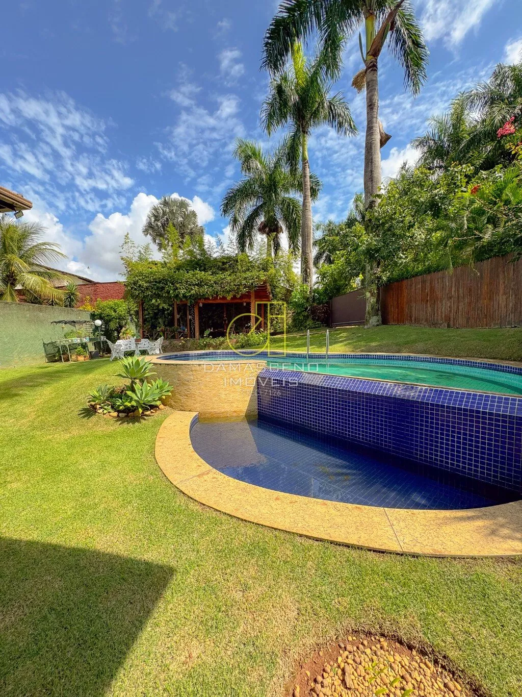 Área externa com belíssimo paisagismo, jardim, espaço gourmet, piscina adulto e infantil. São 04 vagas de garagem, sendo 02 cobertas.