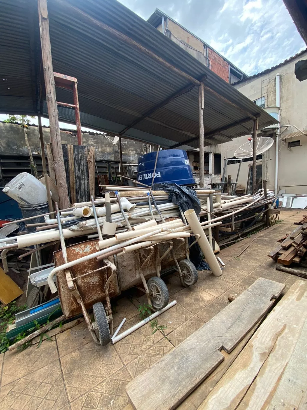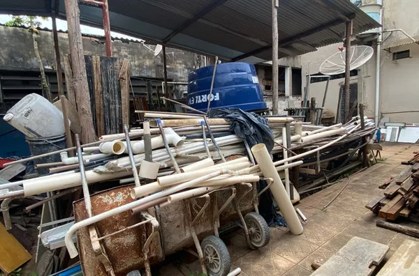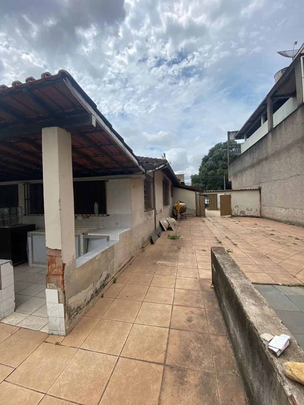 Terreno possui a construção de uma casa com 3 quartos, banheiro, sala,copa,cozinha, varanda na frente e nos fundos. Garagem ampla, com capacidade de mais de 5 carros.