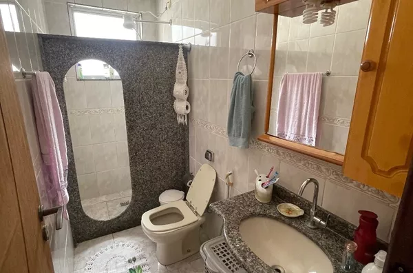 possui uma casa de lage nos fundos com 3 quartos, 1 banheiro, 1 cozinha, área de serviço e 1 vaga de garagem, entrada independente.