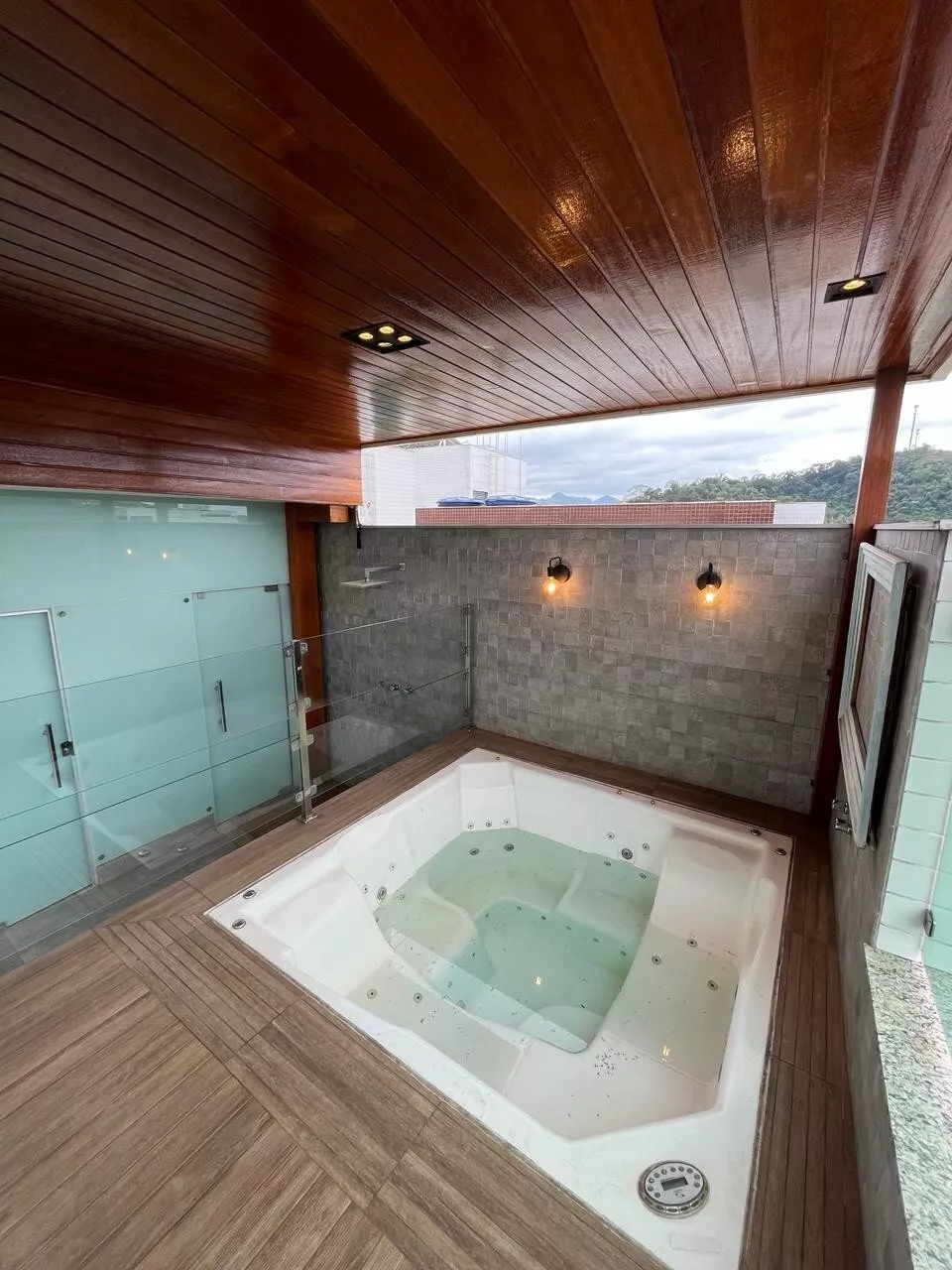 Área gourmet linda e espaçosa possui SPA com hidromassagem, churrasqueira a carvão, sauna, banheiro social e uma vista maravilhosa do cartão postal da cidade.
