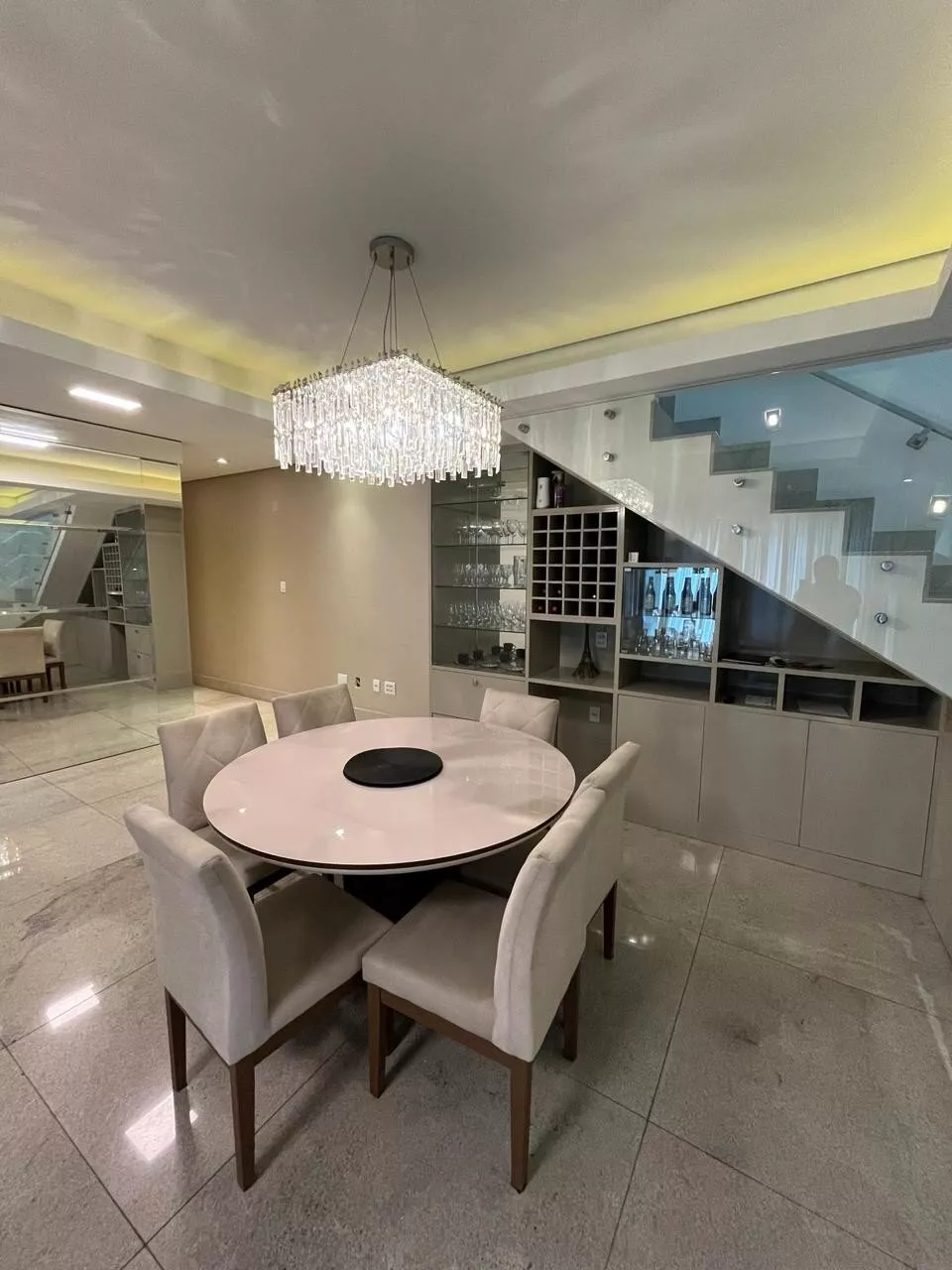 Espaçosa sala em dois ambientes com adega e cristaleira, cozinha ampla e planejada, banheiro social, 04 quartos sendo duas suítes (uma máster com closet e banheira de hidromassagem), área de serviço; móveis planejados em todos cômodos.