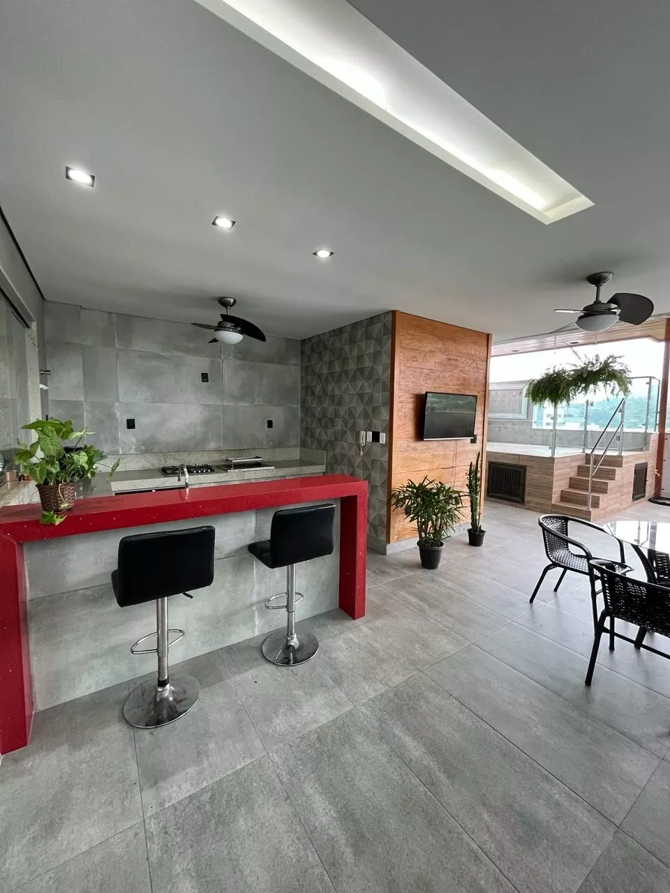 Cobertura com excelente acabamento, possui energia fotovoltaica.