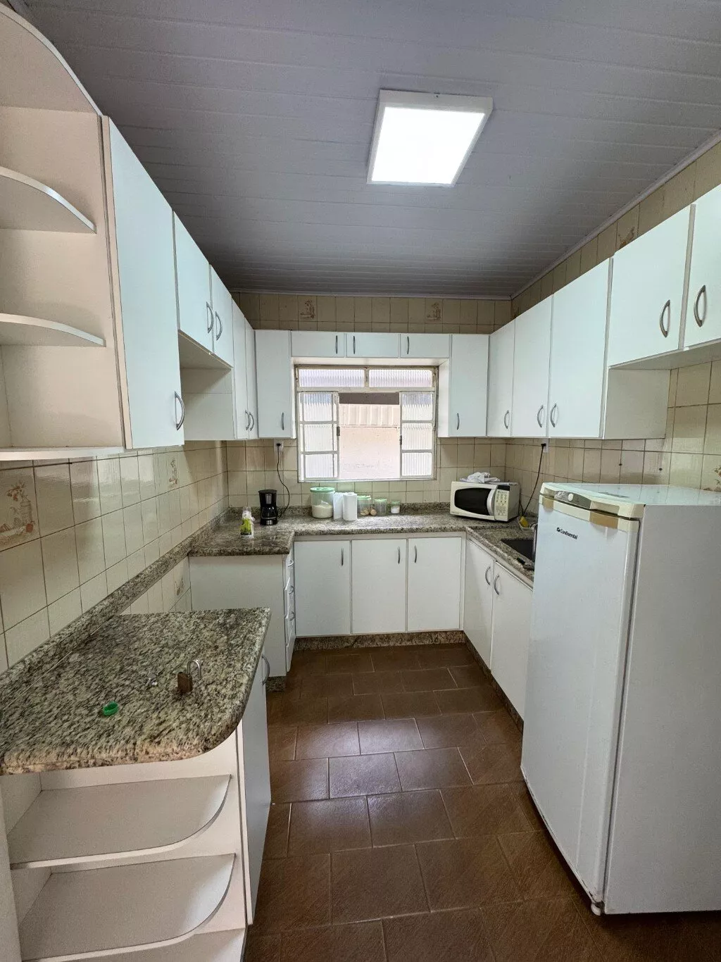 Casa linear de 3 quartos, sala, copa, cozinha com planejados, quintal amplo.
