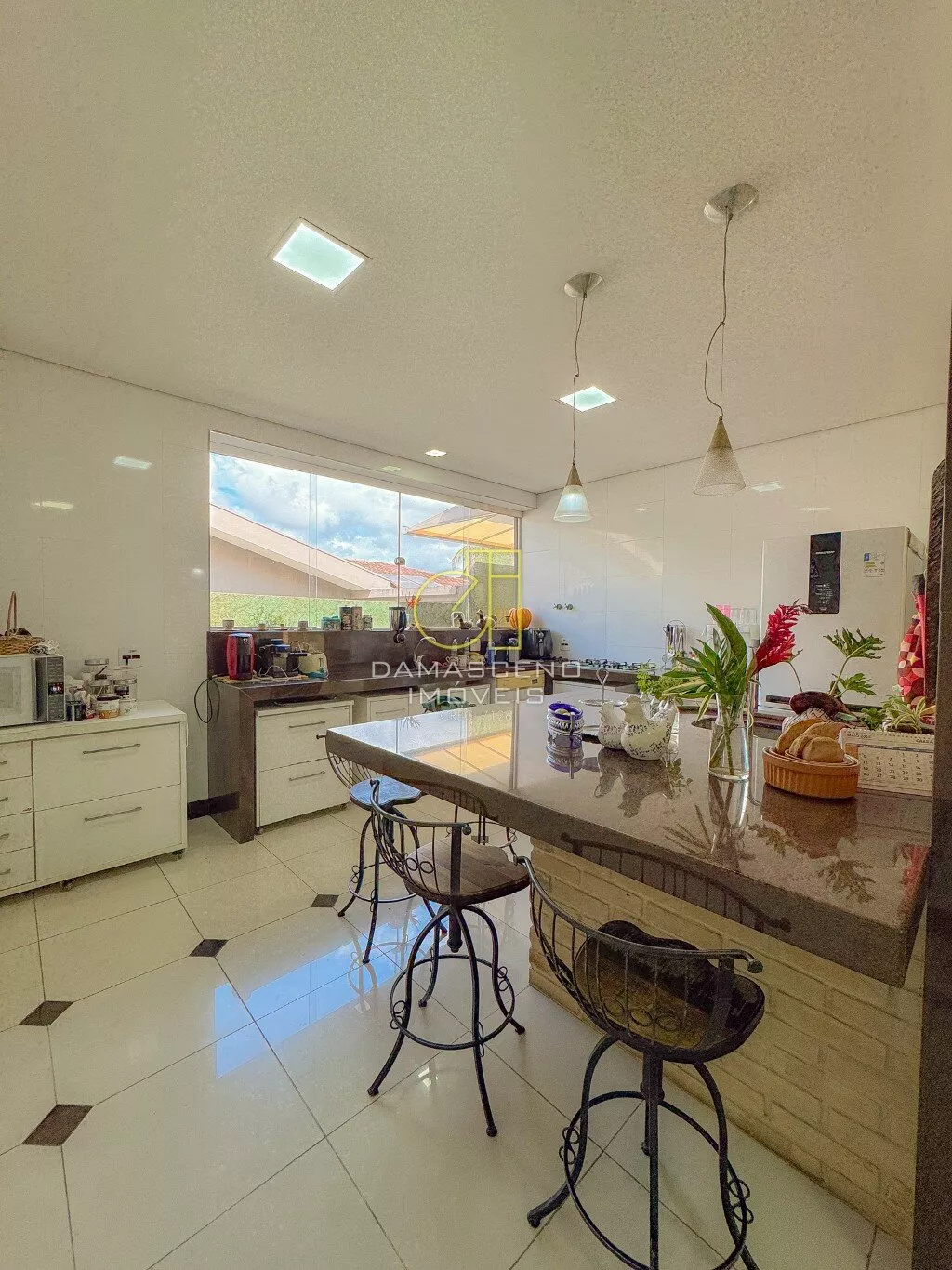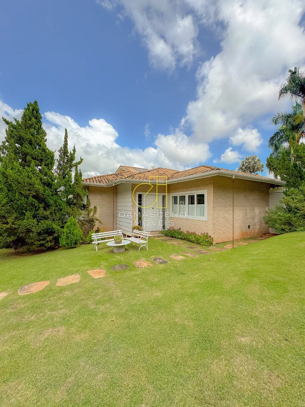 Casa linear com 250m² de área construída, com ampla sala em 03 ambientes, 03 quartos sendo 01 suíte (todos os quartos com saída para jardim lateral), 02 banheiros sociais, 01 lavabo, espaçosa cozinha com armários, lavanderia.