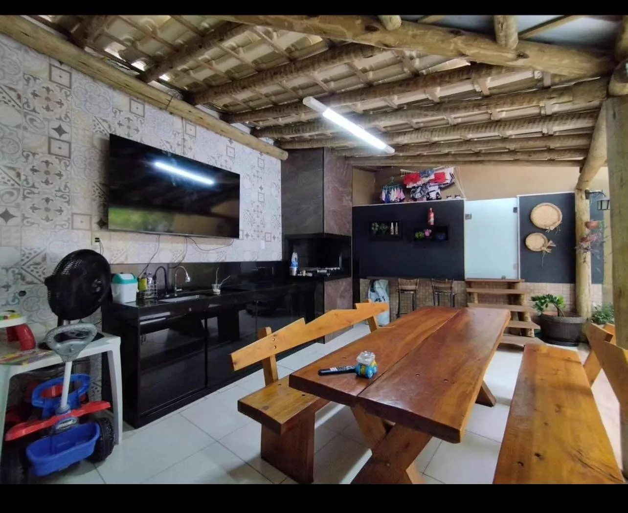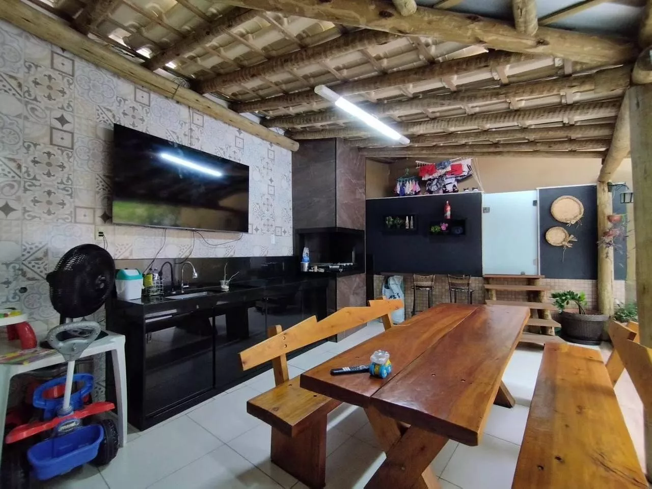 Espaço gourmet com churrasqueira e armário