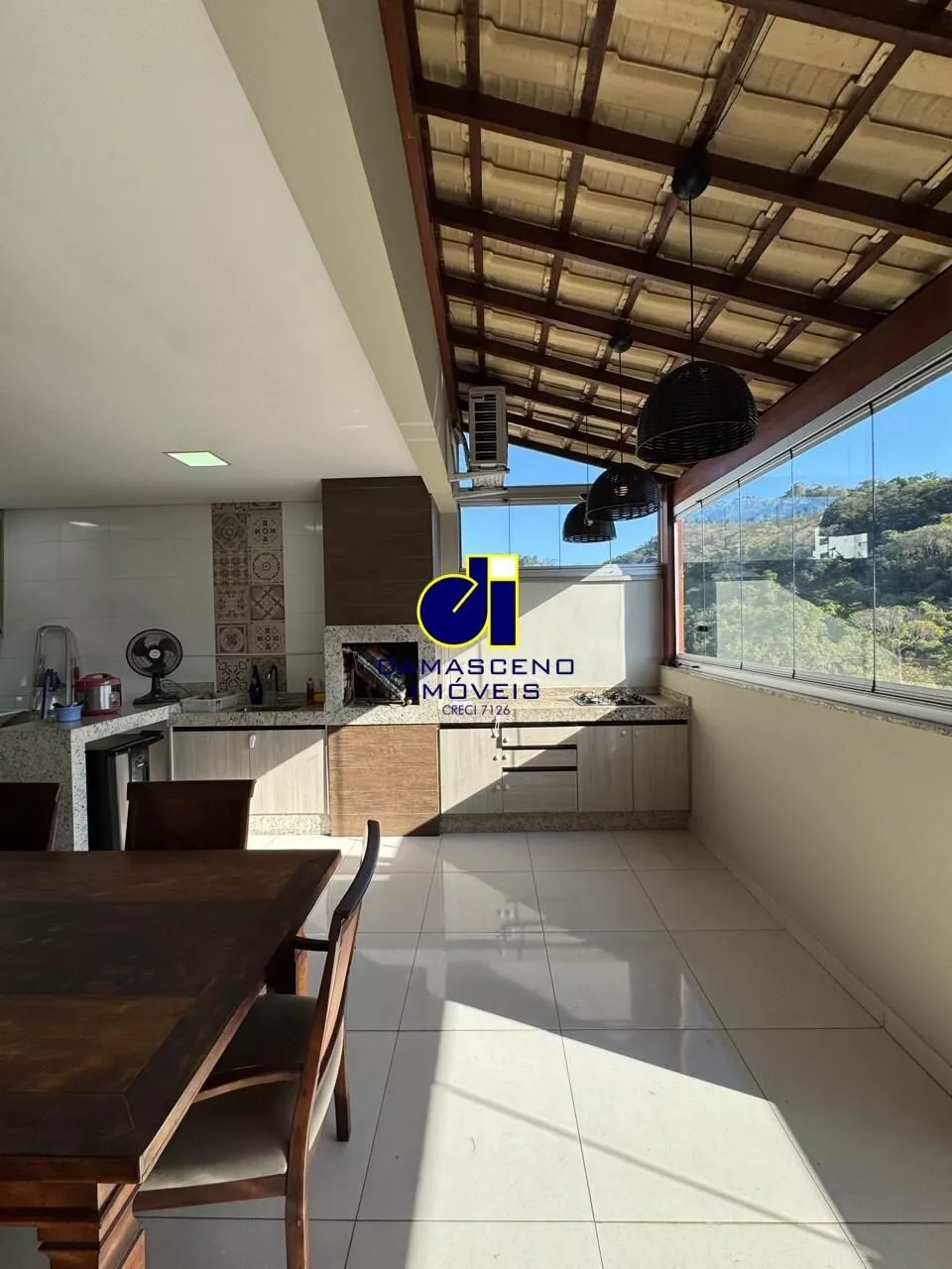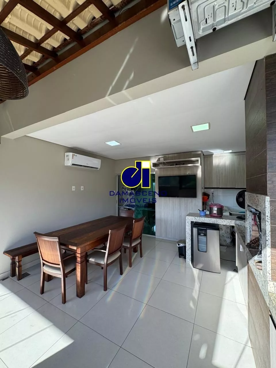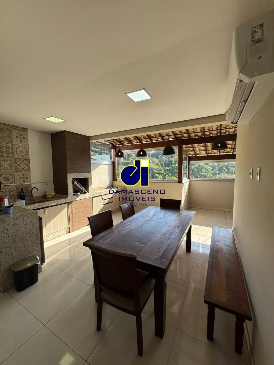 🔹 Espaço Gourmet climatizado com churrasqueira a carvão e chuveirão