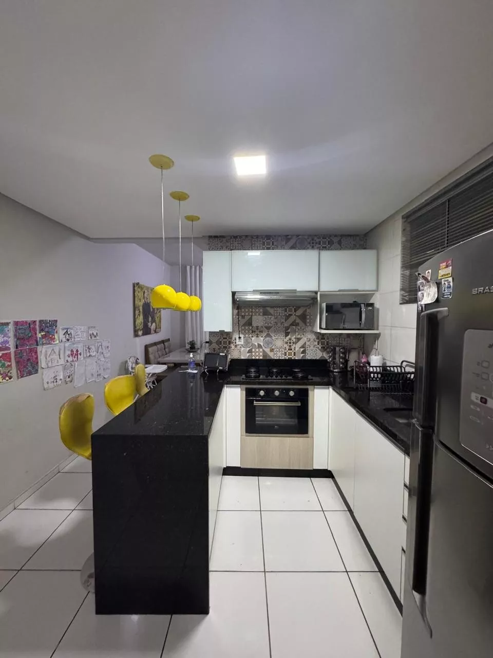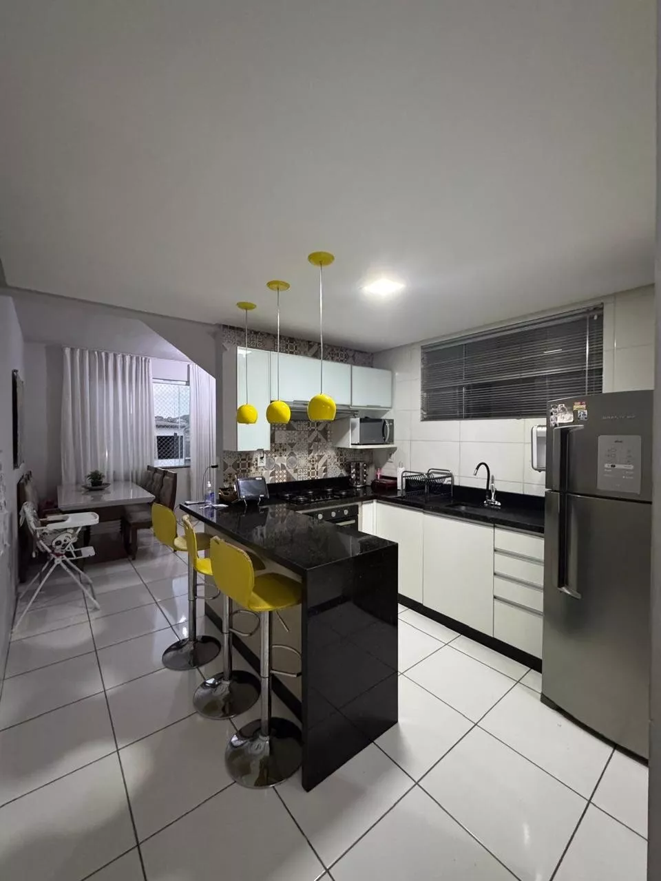 🔹 1º piso: sala ampla, cozinha moderna com planejados e bancada em granito com ilha, área de serviço independente e dois quartos.