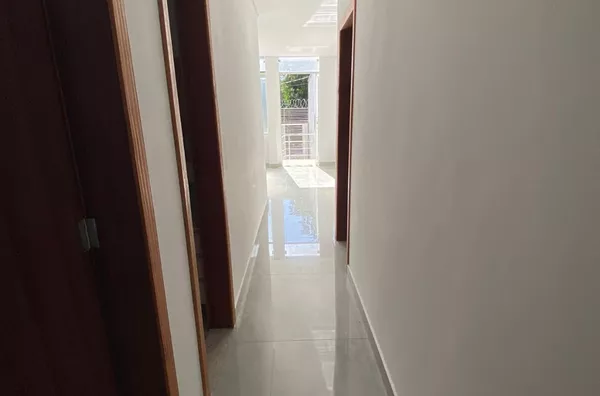 Casa geminada linear, muito bem projetada e ampla , possui 3 quartos ( sendo 1 suite), 2 banheiros, sala de tv, sala de jantar, cozinha com móveis planejados, área de serviço, aréa nos fundos para uma futura construção de área gourmet, 2 vagas de garagem.